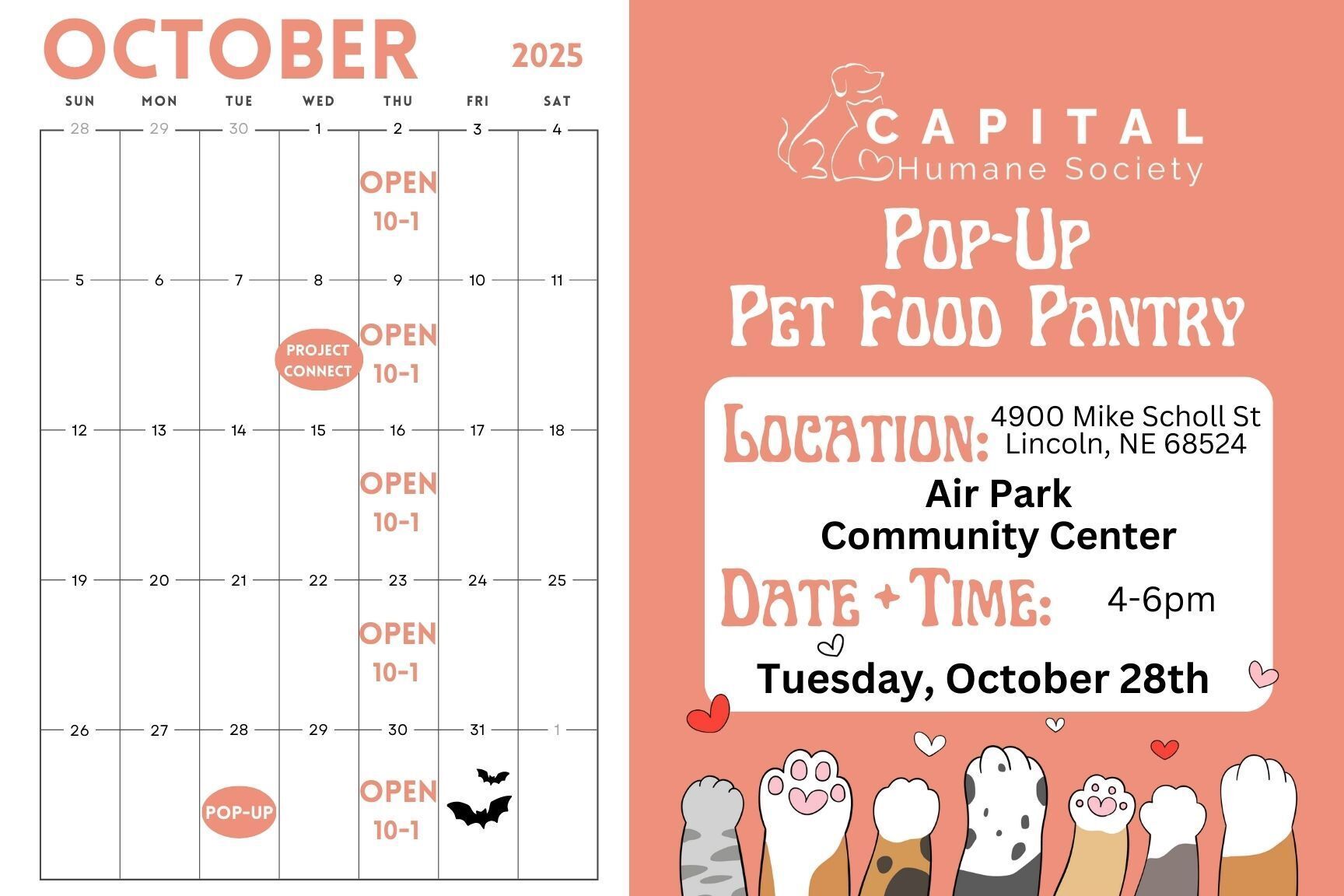 If you would like to donate food or supplies to be given out at our pantry, please take your donations to any of our locations (Pieloch Pet Adoption Center at 6500 S. 70th Street, Admissions & Assessment Center at 2320 Park Boulevard, or Stransky Veterinary Center at 5505 O Street) and let staff know, thank you!